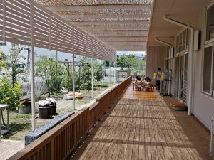 長野市の学校法人朝陽学園さまの本園舎に、優しい日よけが完成しました。