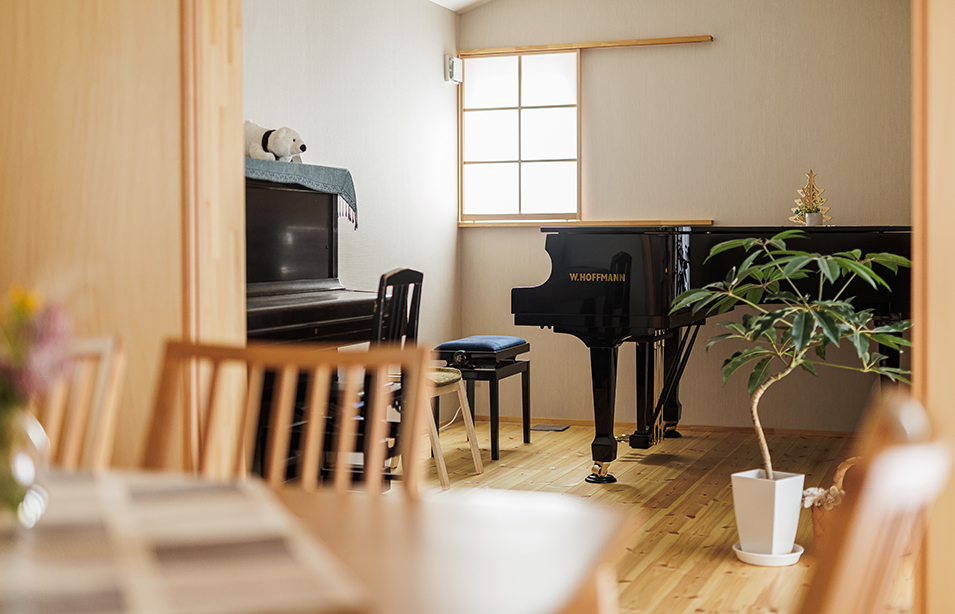 ご家族でピアノを奏でたいというお客様の想いから始まった家づくり。